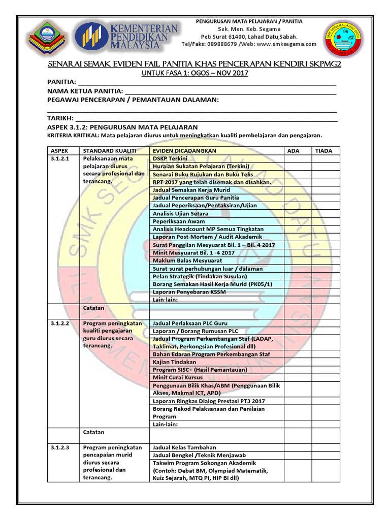Borang skpmg2 standard 4 excel 2018 contoh 3. Membuat ketetapan berkaitan pelaksanaan hal ehwal murid dengan mendokumen menyebar luas dan menyemak semula ketetapan serta membuat tindakan susulan dengan mekanisme yang sesuai secara menyeluruh jelas mengambil kira. Pengemaskinian Evidens SKPMg2 Fail - Pastikan semua evidens dalam setiap standard SKPMg2 disediakan.